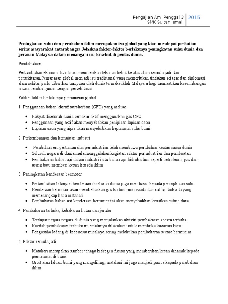 247836182 Peningkatan Suhu 1 Docx Pemanasan Global Merupakan Satu Fenomena Pemerangkapan Gas Yang Dikenali Sebagai Gas Rumah Hijau Yang Mana Course Hero
